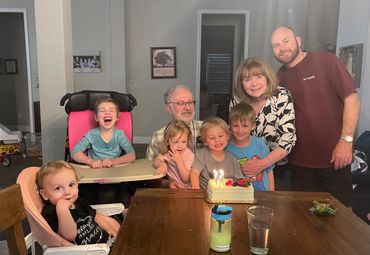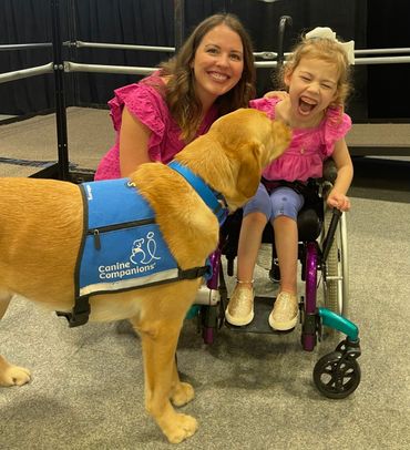 We have continued to connect with families through social media, and have received much more information about Annabelle’s diagnosis. There are about 350 children diagnosed with a GNAO1 mutation in the world; there is a broad spectrum of symptoms, depending on the variant. Some variants are known to cause seizures, and some cause movement disorders. Every child diagnosed seems to have some sort of developmental delay. There is currently no cure for this GNAO1 mutation, but our goal is to change that through fundraising to give money to research! Annabelle currently attends fourth grade and is loving every minute of school! Therapy seems to be Annabelle’s only treatment at this time. She does have hypotonia, dystonia, and chorea. She is also the happiest and hardest working little girl! She has made incredible progress and we pray that continues. Annabelle can now crawl around the house, getting to where she wants. She can get into a sitting position from lying down, she can maneuver her wheelchair around, and she is ‘talking’ using her AAC device (this is a game changer for her and us!). Annabelle is such a happy, beautiful, sweet, and funny little girl with the prettiest smile! And she is the best big sister! Annabelle also received a service dog, Weller. He is amazing and they are BFF!